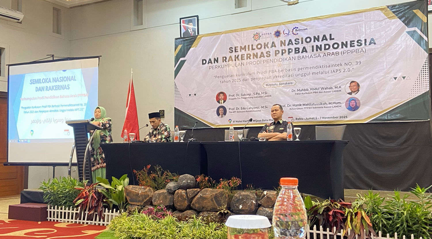 Batu, Malang (7 November 2025) — Perkumpulan Program Studi Pendidikan Bahasa Arab (PPPBA) Indonesia sukses menyelenggarakan Seminar Lokakarya Nasional dan Rapat Kerja Nasional (Rakernas) di Hotel El Kartika Wijaya, Kota Batu, Malang, pada 5–7 November 2025.